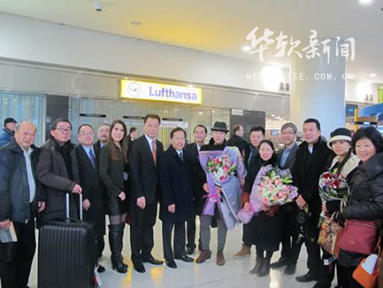 20日下午,中国国务院侨务办公室宣传司文化处处长蔡勇及担纲首场演出的三位著名艺术家李玉刚、王宏伟、李雨儿抵达纽约肯尼迪国际机场,受到了中国驻纽约总领馆副总领事钟瑞明、王军领事及文化中国(美国)艺术团团长梁冠军、诸多侨界人士的热烈欢迎。(侨报记者孙璎姝摄)