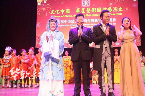 本网讯 为庆祝中美建交35周年及迎接新年到来,“文化中国·华星艺术团”首场演出将于12月21晚在美国纽约林肯中心艾弗里费雪厅举行,纽约华人艺术家与国内三位著名艺术家李玉刚、王宏伟、李雨儿同台奉献文化盛宴。中国驻纽约总领馆相关领导及美国著名侨领、美国美东华人社团联合总会主席、文化中国(美国)艺术团团长、广州大学华软软件学院董事长梁冠军先生出席观看了文艺晚会。