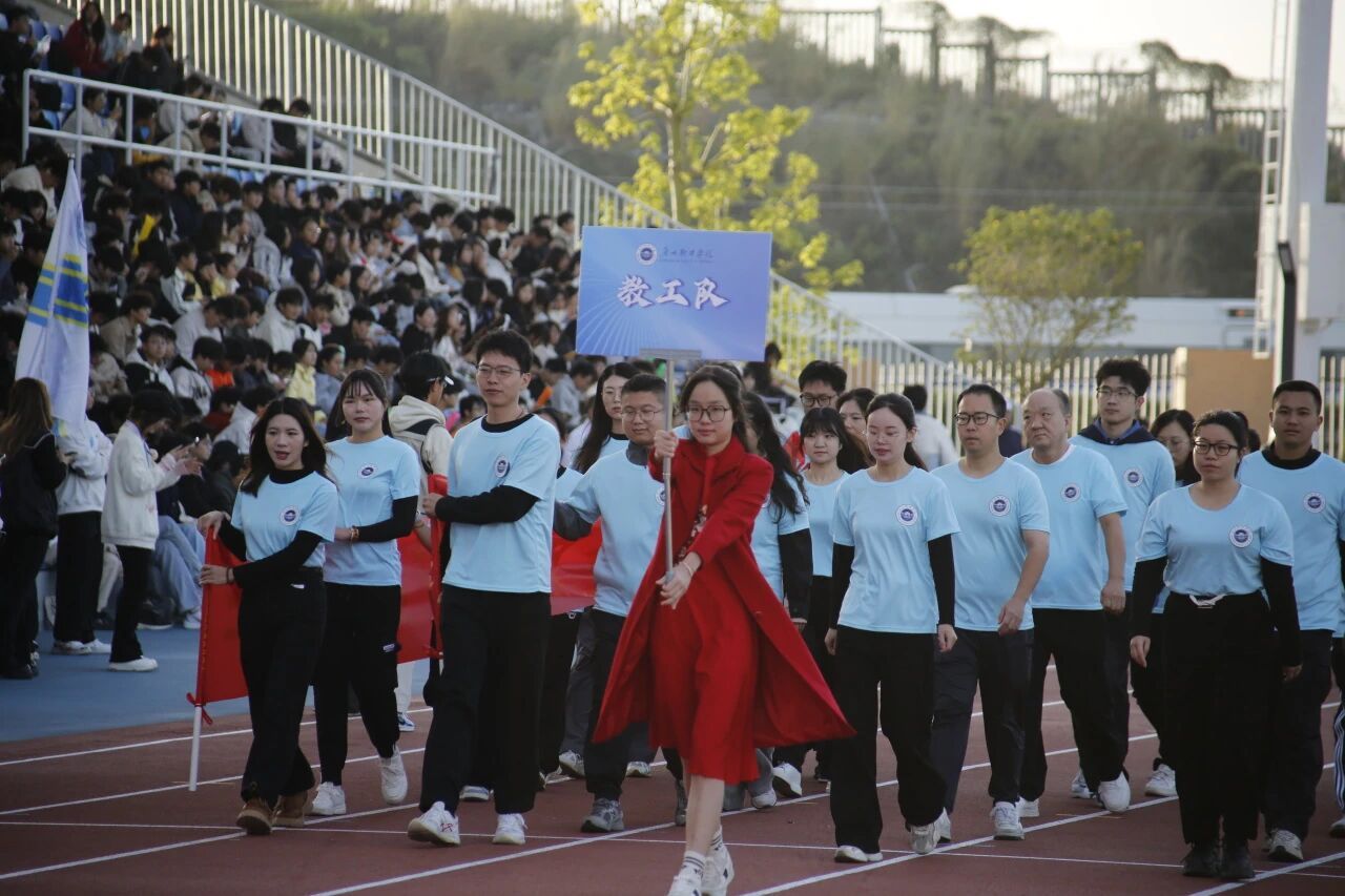 运动会开幕式上,刘友坤致开幕词。他表示,体育是立德树人的重要载体,更是精神传承的鲜活课堂。运动的青春更有力量,自江门校区启用以来,学校始终将体育教育与学生培养紧密结合,从9月开始筹备,10月-11月陆续开展,江门校区贴合新生需求与校区发展节奏,共立荧光夜跑、拔河比赛、足球赛、篮球赛等7项特色体育项目。学校始终秉持“人人可参与,月月有赛事”的理念,希望每一位同学都能走出宿舍、走上操场,在运动中养成健康习惯,让体育精神深度融入校园文化、浸润师生成长。他寄语全体师生,要动以强体,学以明智,二者并行方致远。愿大家以一年一度的运动会为契机,将赛场拼搏的劲头转化为学习成长的奋进动力,把团结协作的优良作风融入宿舍生活、班级建设的方方面面,让青春之花在全面发展的征程中绽放璀璨光彩!同时预祝本届运动会取得圆满成功,老师和同学们赛出精彩,再创佳绩!