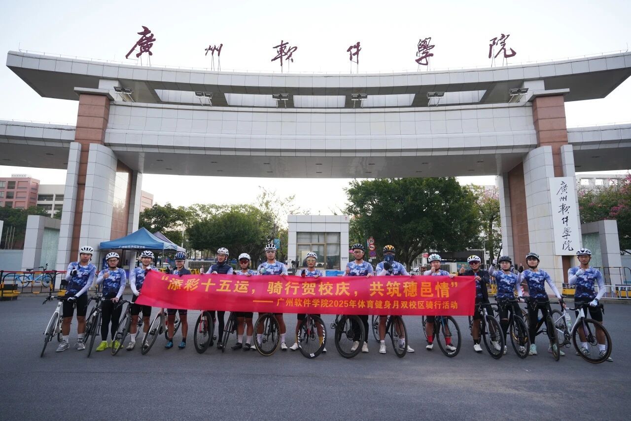 本网讯 当十五运的余温还在大湾区的上空环绕,广软人正以自己的方式践行着运动无止境的健康理念。2025年11月29日清晨,学校党委副书记张广金等15名师生,从广州软件学院广州校区出发,跨越广州、佛山、江门三市,骑行168KM,到达江门校区。他们以车轮丈量情谊,用汗水诠释体育精神。在12月18日23周年校庆日即将到来之际,学校积极响应十五运会全民健身号召。深化广州、江门双校区联动,由校团委牵头策划了“添彩十五运,骑行贺校庆,共筑穗邑情”2025年体育健身月之双校区骑行活动。