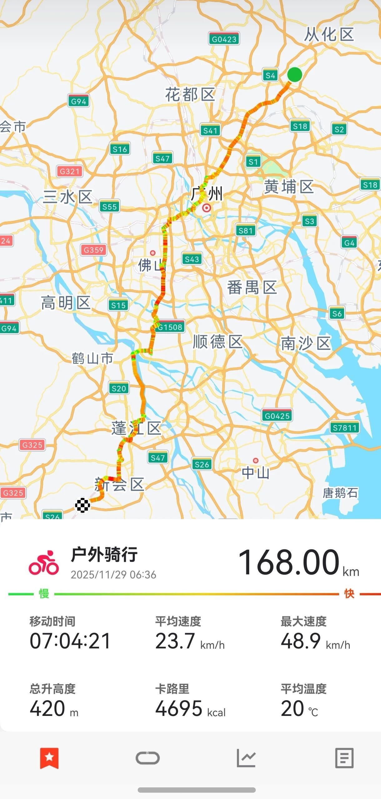 软件与人工智能学院2023级软件工程专业的胡锦芳同学表示:“11月27日,团队从广州校区试骑至从化区风云岭,那会落到最后一名,才知道体能掉太多。”29日,随团队正式从广州校区出发去江门,168km一路闯城区、爬大桥,还经历了两次爆胎。他表示,十分感谢有骑行队员们的帮忙,才能继续前行。“当骑进江门校区的那一刻,我挥着手,无比激动——这趟骑行之旅刻骨铭心、这趟骑行之旅非常有纪念意义!”胡锦芳感叹道。