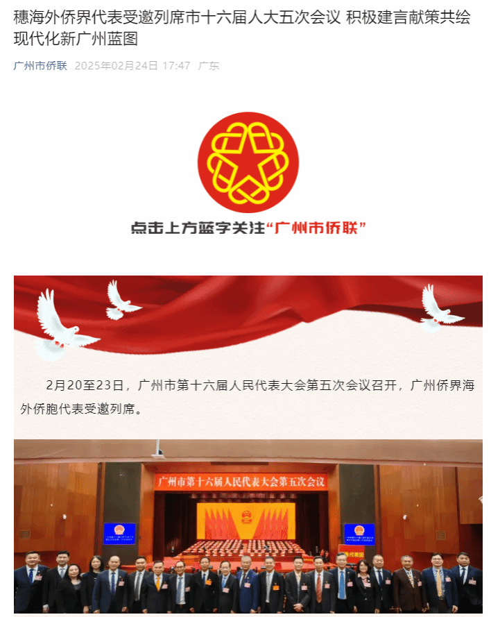 (来源:中央广电总台国际在线 学习强国·广州学习平台、广州市侨联 综合整理:党委宣传部 初审:房小铃 复审:钟志坚 审定:胡 争)