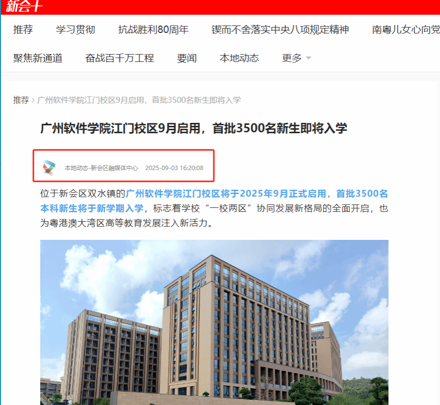 【新会区融媒体中心】广州软件学院江门校区9月启用,首批3500名新生即将入学