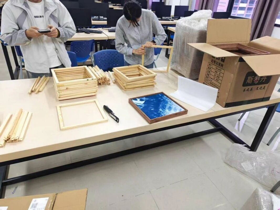 师生团队出发前在整理展览作品
