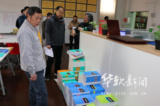 检查组人员查看各部门的消防日志