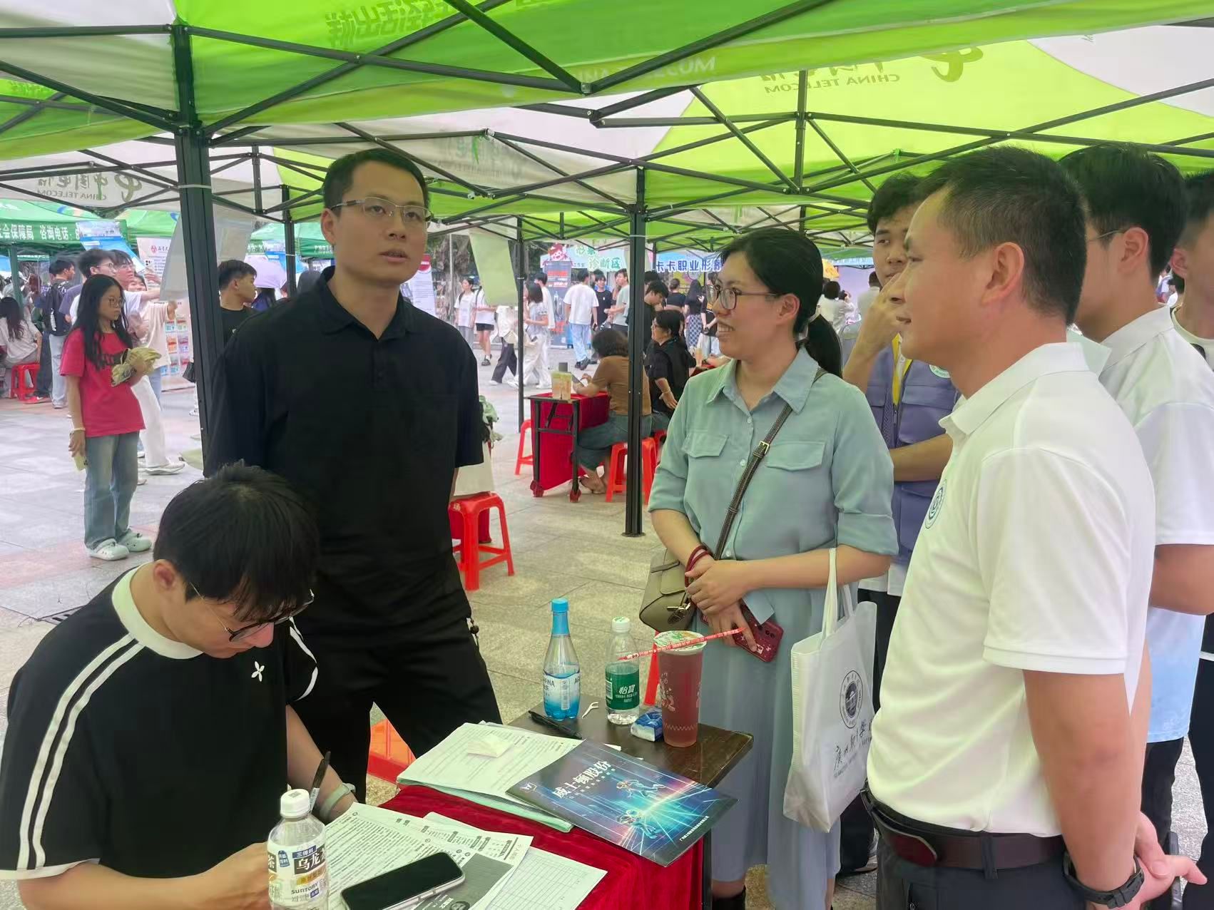 当天下午14:30,现场早已经是人头攒动,参加应聘的毕业生三五成群行走在各个招聘企业摊位前,精心挑选心仪的岗位。学校副校长徐祥、各二级学院党政负责人来到现场走访,围绕政校企协同育人、人才培养、岗位需求、求职意向等议题与就业部门负责人、企业代表、求职学子深入交流。
