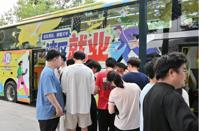 除了校友企业的暖心加持,创新服务更是为双选会注入满满活力。“湾区就业BUS”全新亮相,为同学们提供现场求职招聘、求职面试技巧指导、就业服务体验、政策宣传、线上直播等一站式公共就业服务,搭配趣味现场打卡活动,吸引了大批学子积极参与,让求职之路更具趣味性与获得感。