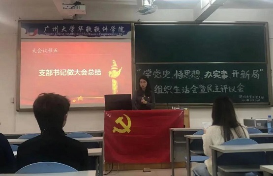 最后,严书记对本次大会做出总结,她对各位党员在上一学年所作出的贡献与取得的成就表示肯定,对不足的地方提出整改建议,同时期待大家在今后的日子中能够继续秉持优良的作风,积极进取、奋力拼搏,争取创造更优异的成绩。严老师还表示,我们作为共产党员应该加强自身的党史学习,要从党史之中汲取精神之钙,从党史之中汲取理论之魂,从党史之中汲取奋进之力,从党史之中汲取浩然之气,努力共筑起更为牢固的共产党人的精神家园。